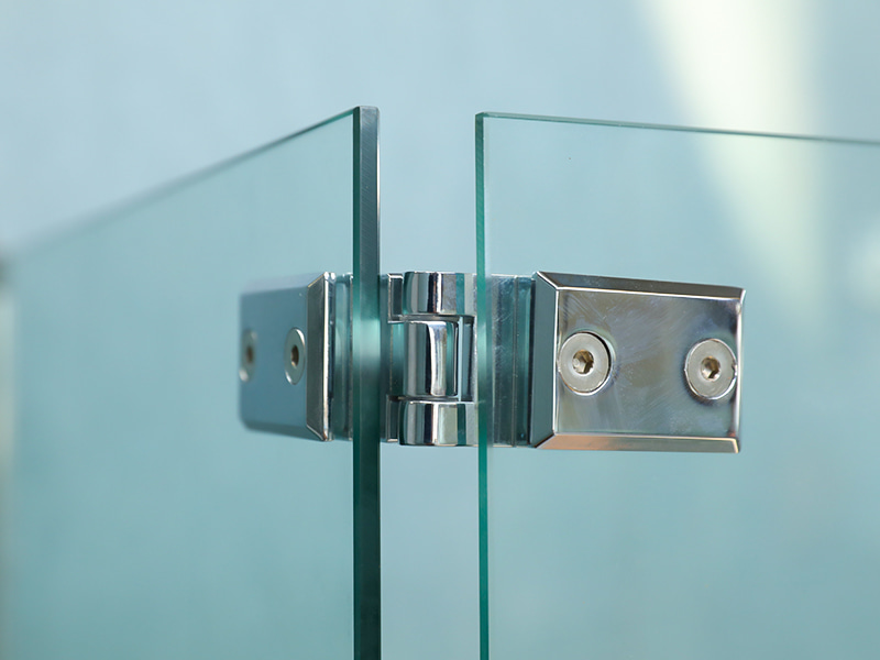 ক্লিয়ার টেম্পারড গ্লাস, ক্রোম অ্যালুমিনিয়াম প্রোফাইল, ডবল হোল হ্যান্ডেল, ট্রে সহ